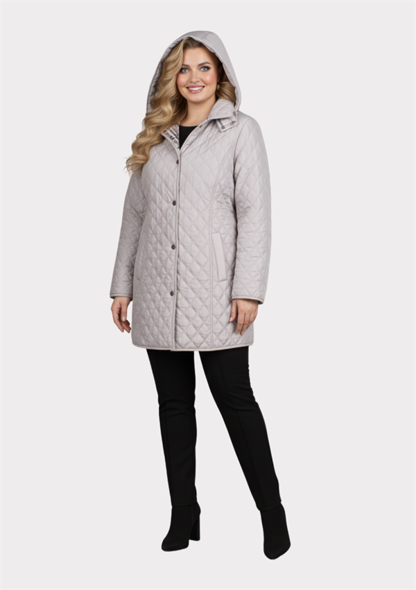 Büyük Beden Bej Renk İçi Ekose Desenli Kapitone Mont