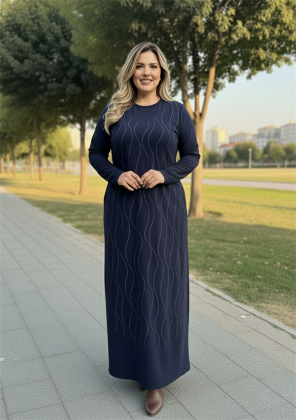 Elbisenin en dikkat çekici detaylarından biri ise parıltılı boncuk işlemeleridir. Özel yapıştırma taşlarla süslenmiş bu boncuklar, elbiseye modern ve ışıltılı bir hava katarken, her ortamda bakışları üzerinize çeker. İster özel bir davette, ister şık bir akşam yemeğinde, bu elbise ile fark yaratacaksınız.