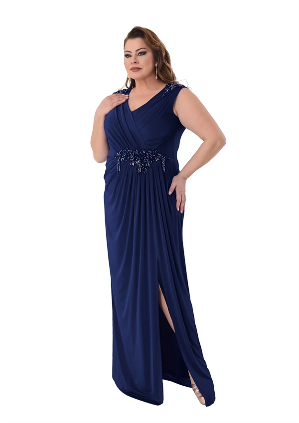 Büyük Lacivert Renkli Likralı Abiye Elbise (2510-1246)